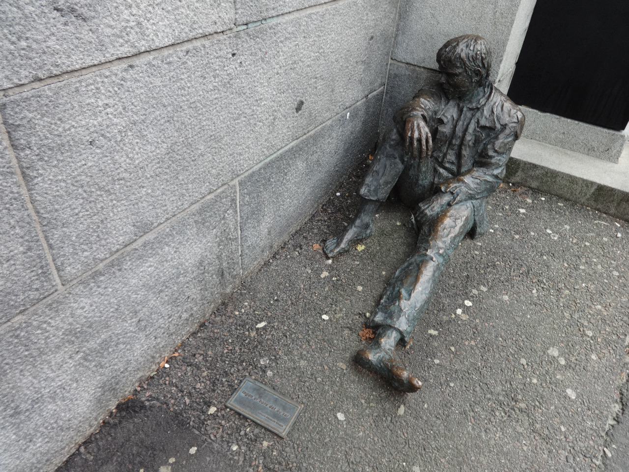 La statue du SDF inconnu ! Oui oui, ça existe. Un peu invisible à côté du grand bâtiment. Ca faisait un peu bizarre de la prendre en photo puisqu'il y avait une vraie SDF qui gueulait sur les marches à côté...